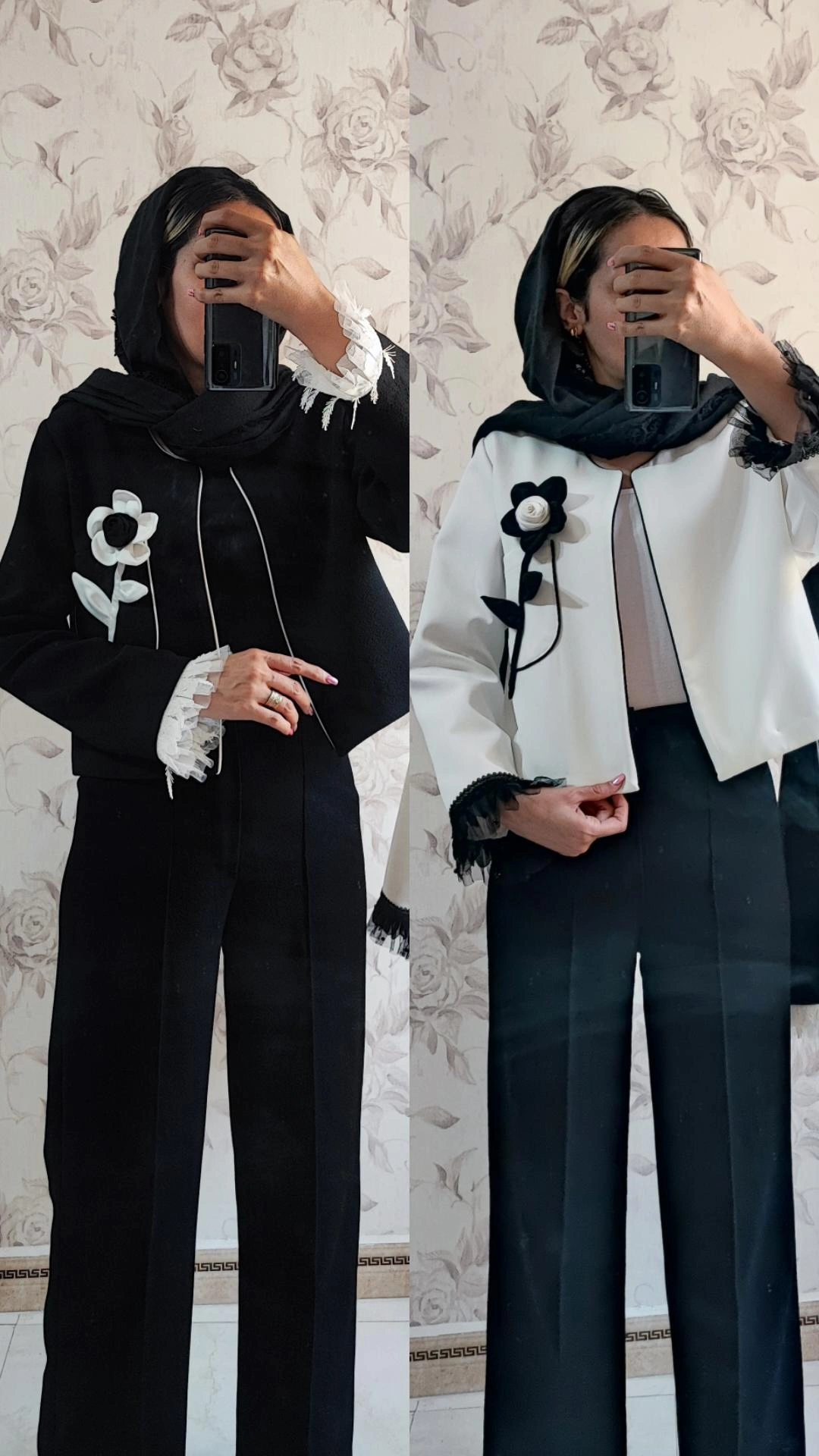 کت nevis جنس کرپ گل برجسته داخل کار لایه کوبی شده و همچنین گان دوزی شده مناسب مهمانی و مجالس کوچک هم با شلوار پارچه ای ست میشه و هم با شلوار لی