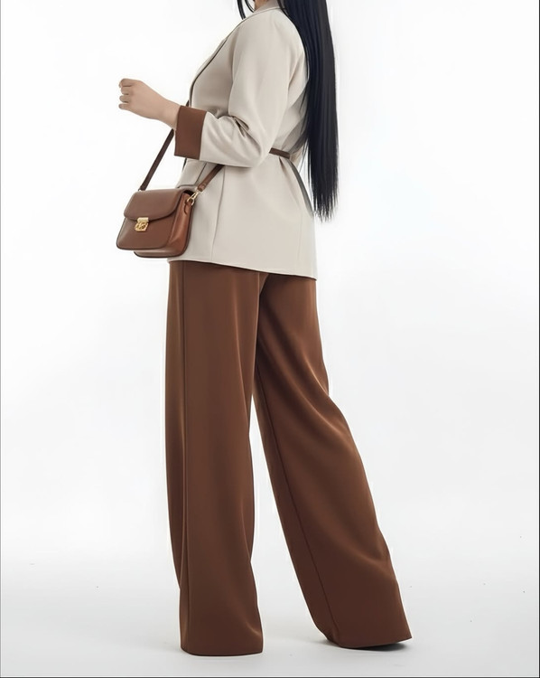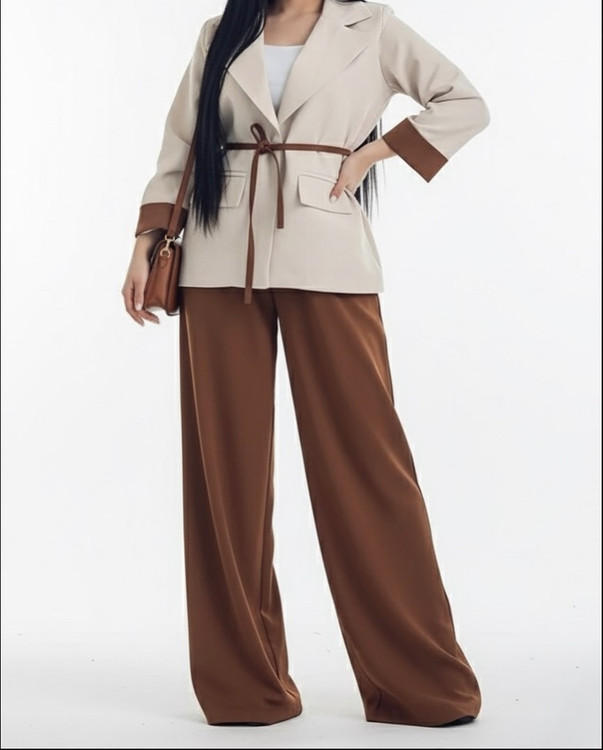 و کت کرم با شلوار قهوه ای