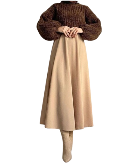 جنس: فوتر کوبیده با بافت نرم و مقاوم قد دامن: ۹۰ سانتیمتر مناسب فصل پاییز و زمستان 🍂 طراحی خوشفرم با دوخت تمیز و حرفهای قابل ست با بوت، کت کوتاه و شومیزهای کلاسیک