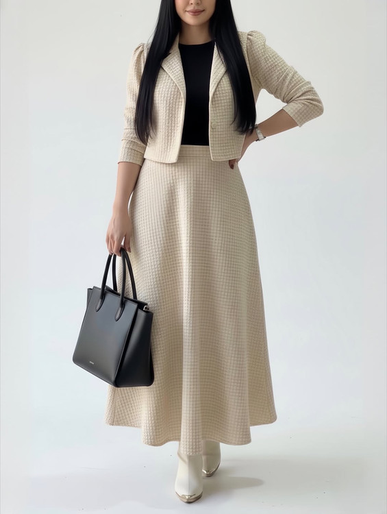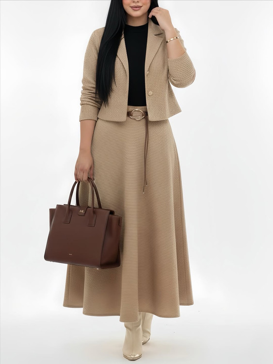 ست کت و دامن کلوش celia پارچه بیسکوییتی مناسب مهمانی