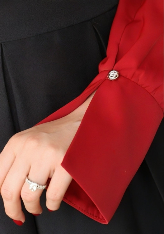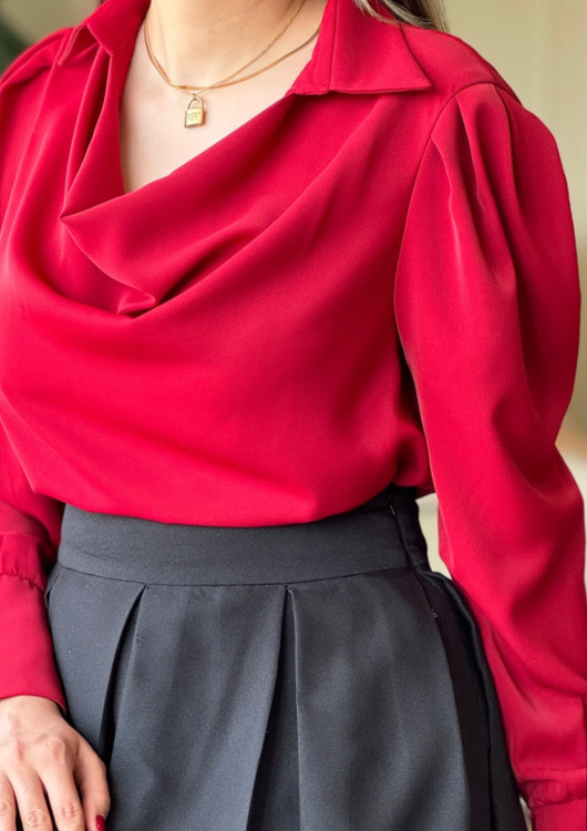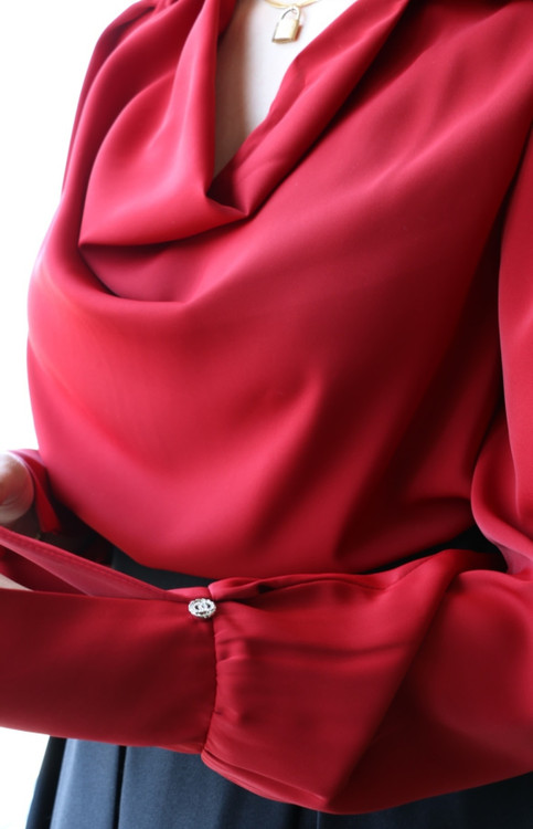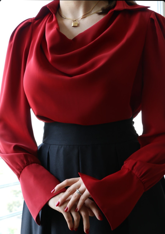 شومیز قرمز یقه شل ما با طراحی زنانه و جذاب، گزینهای ایدهآل برای جشنها و مهمانیهای یلدا است.