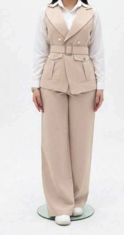 ست Clesta با طراحی هوشمندانه، تعادل بین راحتی و شیکپوشی را حفظ میکند. جلیقه کمردار باعث فرمدهی زیبا به کمر میشود و شلوار گشاد، آزادی حرکت را تضمین میکند. ترکیب این سه تکه، امکان ست کردن با اکسسوریهای مختلف را فراهم میکند. کیفیت دوخت و جزئیات طلایی دکمهها، حس لوکس بودن را به مخاطب القا میکند.